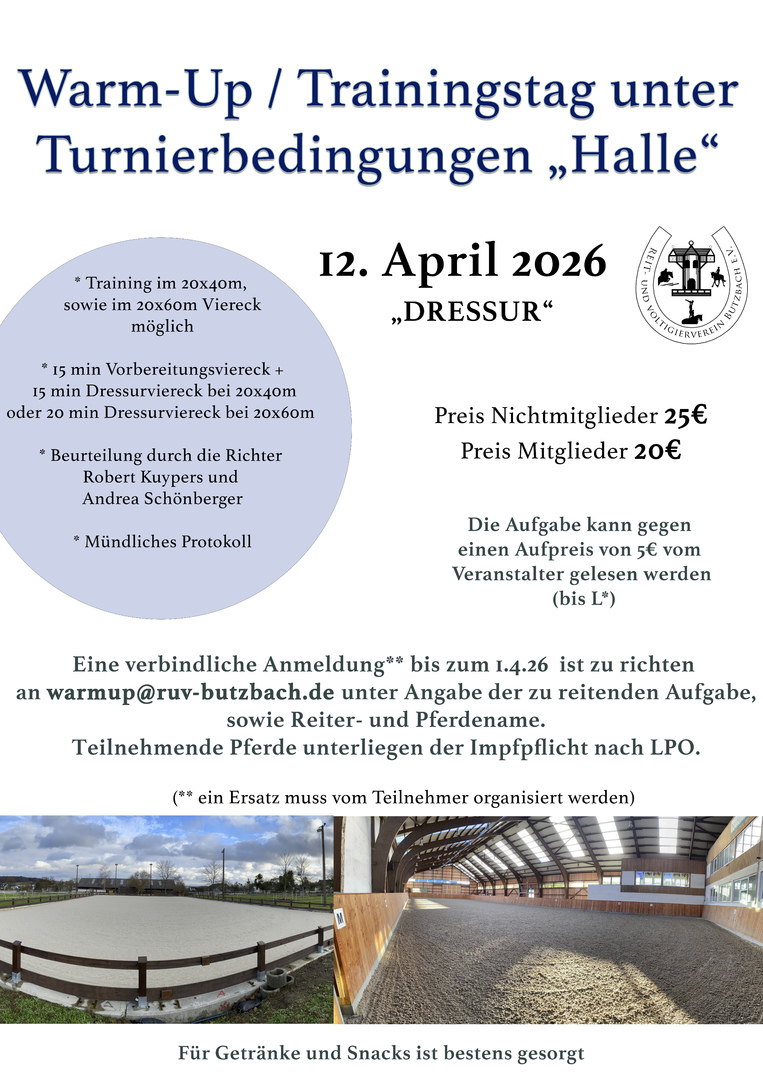 In diesem Jahr findet unser 59. Hallenrreitturnier auf unserer Anlage statt. Drei Tage spannender Dressursport vom 24.-26. April. Von Jungepferdeprüfung über