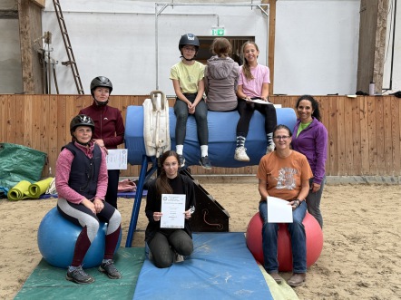 Am Wochenende fand ein sehr lehrreicher Lehrgang mit der Voltigierrichterin Anna Specht statt. Anna ist selbst Trainerin B im Voltigieren und bildet seit Jahren Pferde bis zu hohen Klassen im Voltigieren aus. Unsere Voltigiertrainer nahmen viel Input und Anregungen für die weitere Ausbildung der Pferde Grom, Ramira und Freddy mit. 2 Tage lang war das Hauptthema die Erarbeitung der einzelnen Punkte der Skala der Ausbildung, die Grundsätze für ein weiteres Vorgehen mit Voltigierern und der Gesunderhaltung unserer Pferde. 3 weitere Trainer nahmen teil, um ihre eigene Technik zu verbessern, dies steigert die Qualität der Arbeit mit dem Pferd enorm. Insgesamt nahmen 7 Trainer aktiv, sowie eine externe Trainerin zur Blickschulung teil. Wir danken Anna für den tollen Lehrgang und die Anregungen für die weitere Arbeit mit unseren Voltigierpferden.